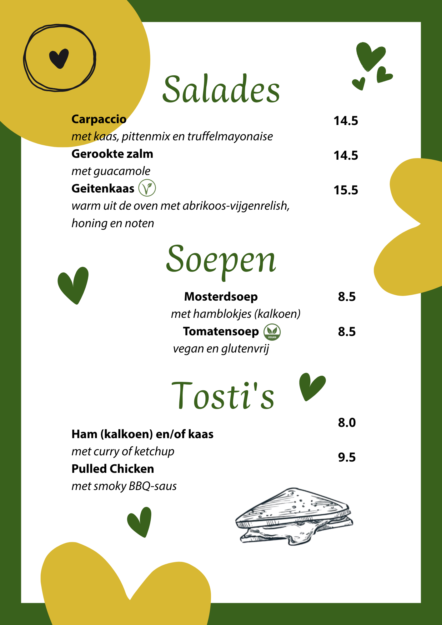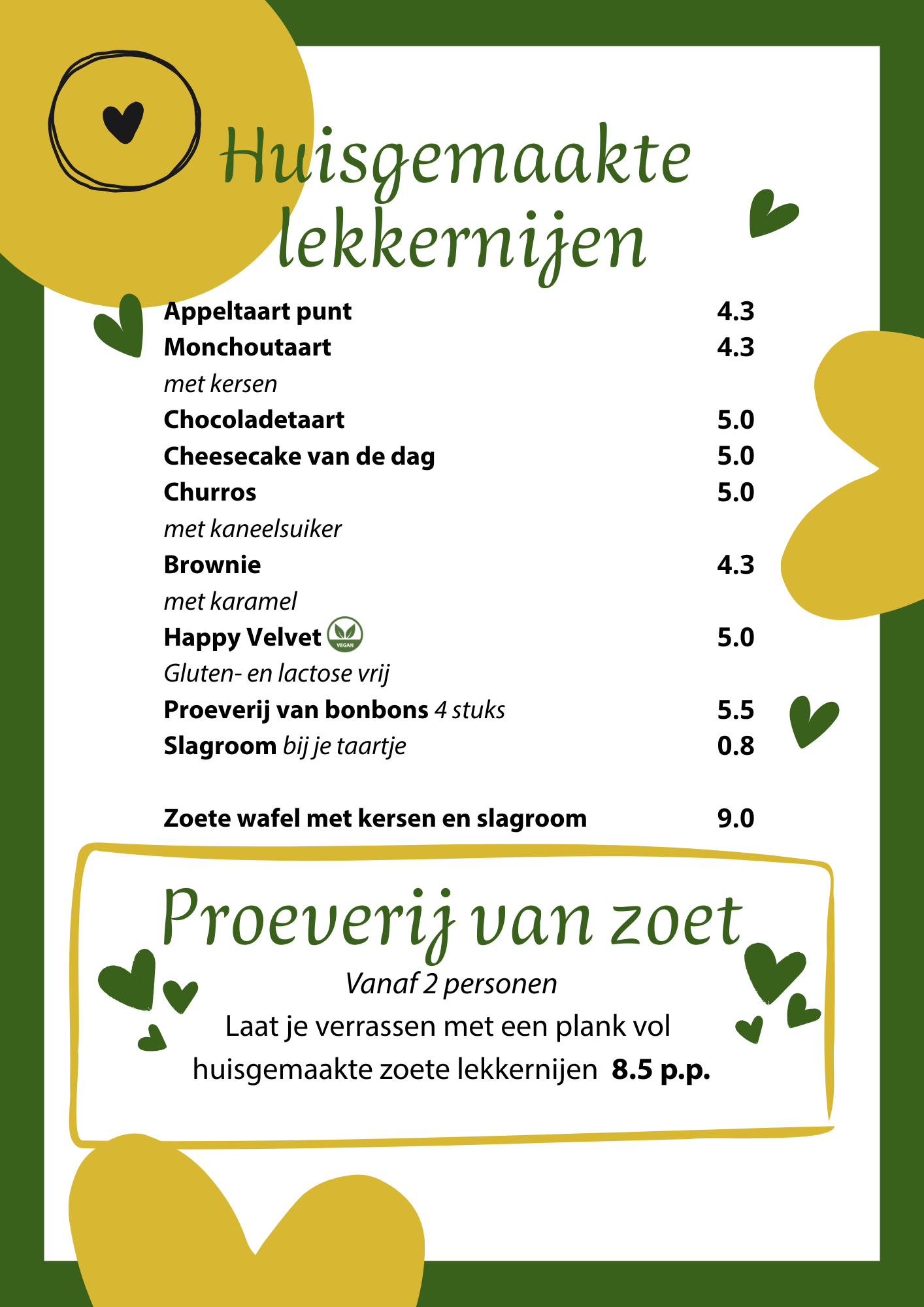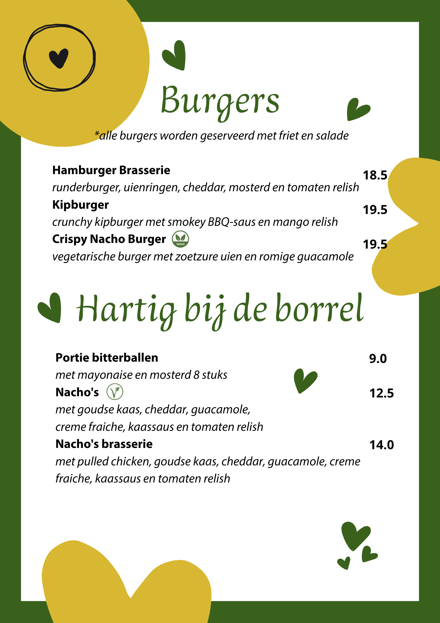 Ontdek onze menukaart en kies uit huisgemaakte klassiekers, verrassende specials en seizoensgerechten.