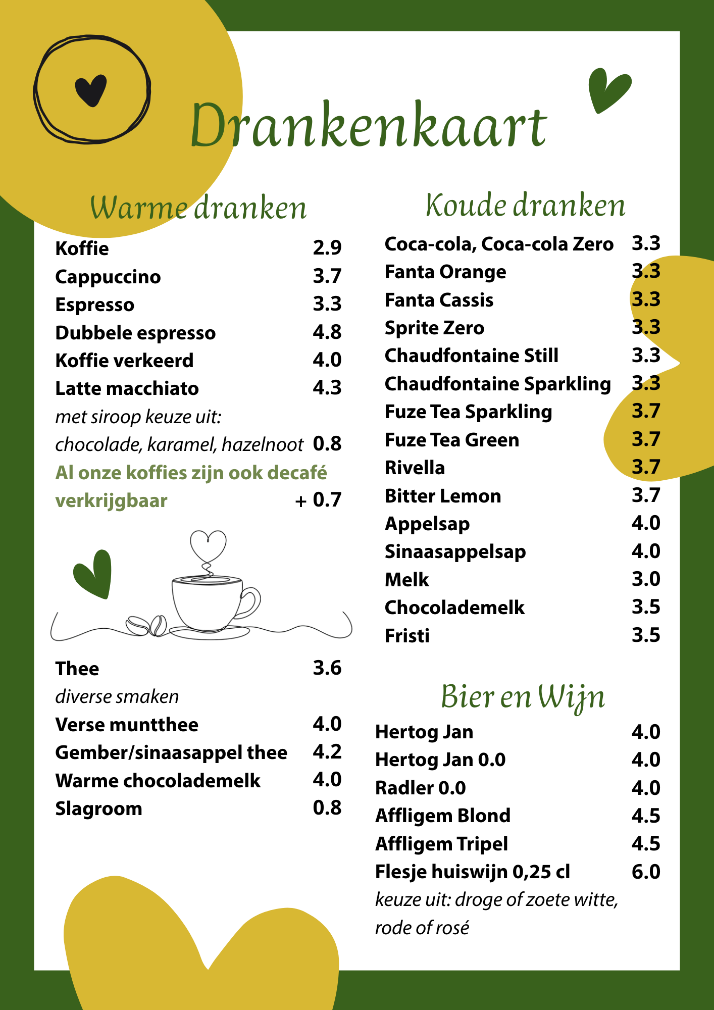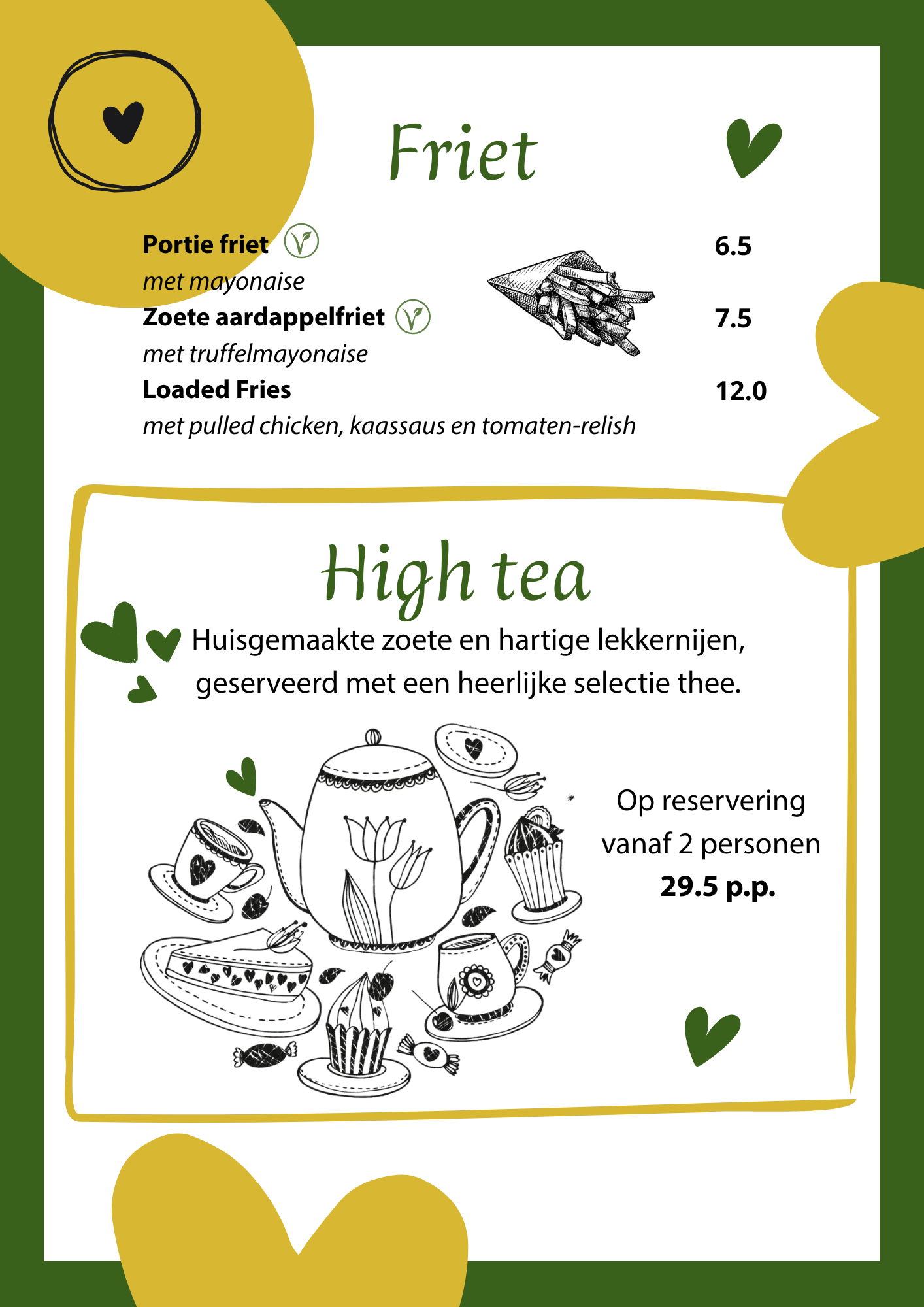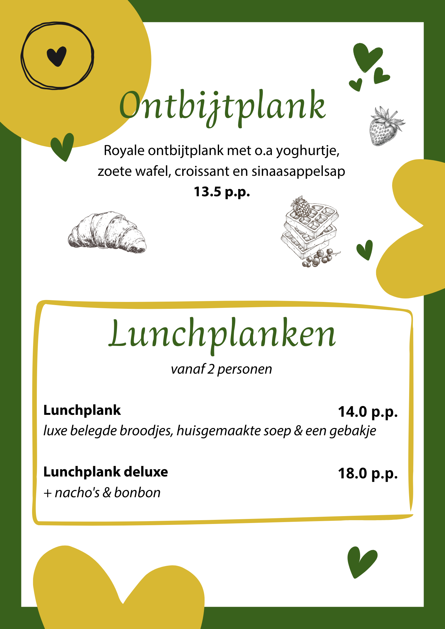 Ontdek onze menukaart en kies uit huisgemaakte klassiekers, verrassende specials en seizoensgerechten.